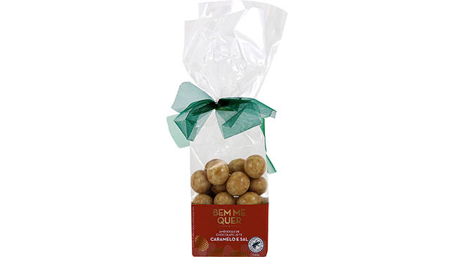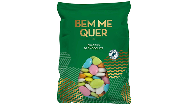 A marca Bem Me Quer também tem opções vegan, como estas amêndoas da Páscoa, que excluem qualquer ingrediente de origem animal sem comprometer o sabor.