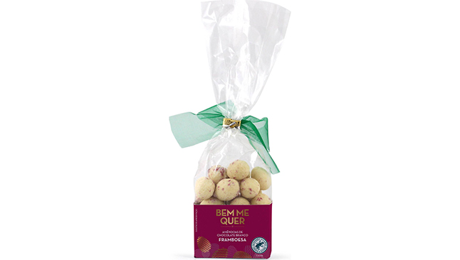 Para quem procura uma versão mais divertida das amêndoas clássicas, as amêndoas lisas coloridas da marca Bem Me Quer são a escolha perfeita. Em alternativa, prove o confeito de pinhão, composto por amêndoas lisas mais pequenas e com recheio de pinhão.