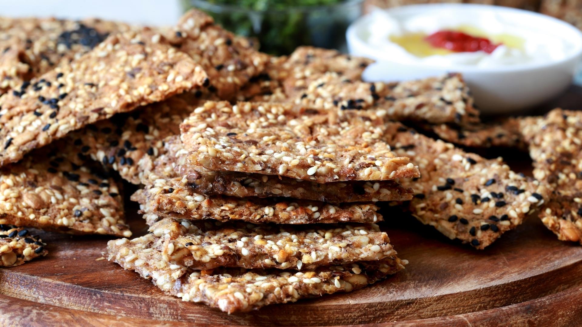 Preparação: Envolva todos os ingredientes e espalhe uma camada fina num tabuleiro forrado com papel vegetal. Marque quadrados com faca e leve ao forno a 160°C, durante 25 a 30 minutos (ou até estar seco e dourado). Deixe arrefecer e parta.