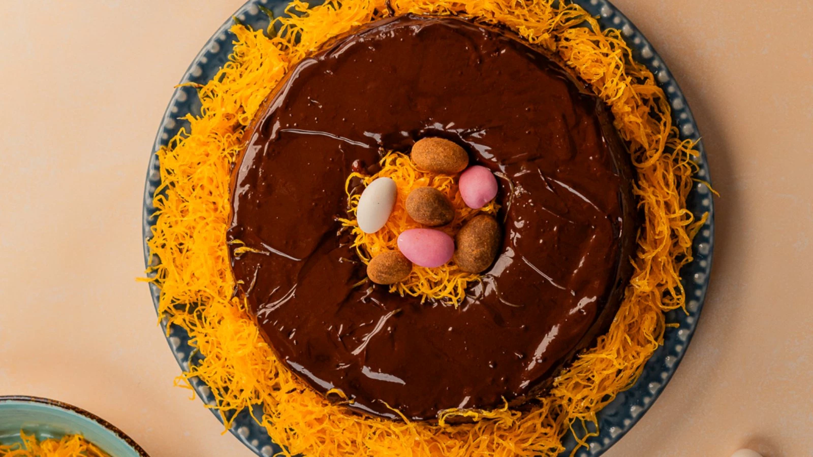 O bolo do ninho da Páscoa transporta qualquer um para uma infância saborosa. Se ainda não provou, trata-se de um bolo de baunilha com uma leve cobertura de chocolate. No meio e ao redor, os fios de ovos imitam um “ninho”. Por dentro, o destaque vai para as amêndoas coloridas para decorar e trincar. Há sobremesa de Páscoa mais divertida do que esta?