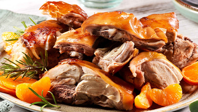 - Leitão Assado: um prato estrela das festas, com pele dourada e crocante por fora e carne suculenta por dentro como manda a tradição.