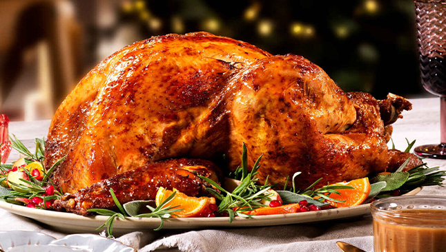 Além do peru, encontra uma vasta seleção de pratos festivos – opções de peixe, carne, vegetarianas e sobremesas – tudo para agradar