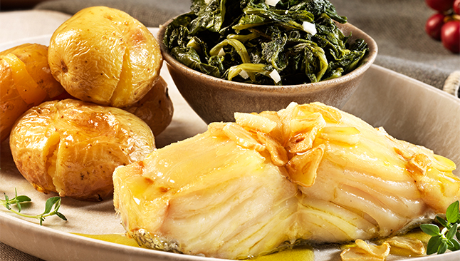 - Lombos de Bacalhau à Lagareiro com Camarão: para ficarem suculentos e saborosos, os lombos de bacalhau são assados no forno com azeite, alho e ervas aromáticas, e acompanhados por batatas assadas a murro, grelos e camarões salteados.