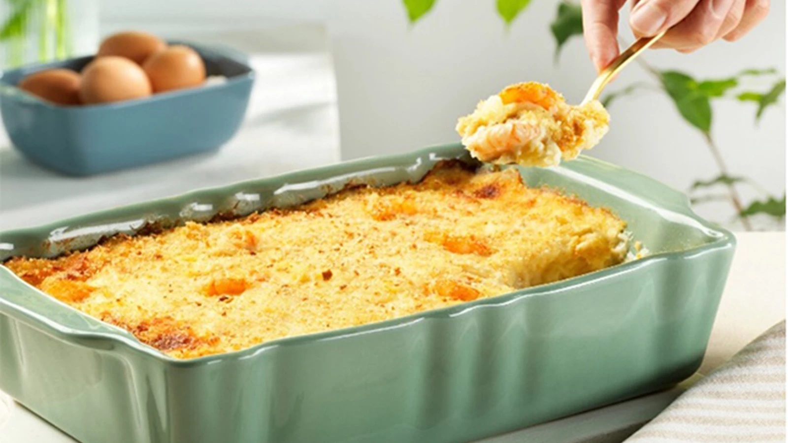 Uma combinação clássica que conquista todos à mesa: o Bacalhau com Natas e Camarão da Cozinha Continente é cremoso, reconfortante e cheio de sabor. Preparado com lascas de bacalhau, camarão e um molho de natas aveludado, é finalizado com uma cobertura gratinada que traz o contraste perfeito de texturas.