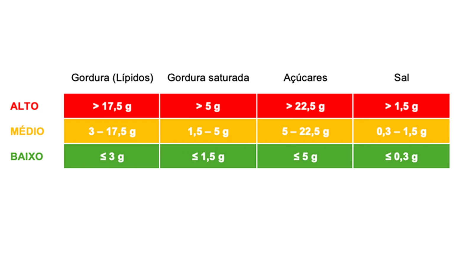 Esta é uma ferramenta que, de forma simples e rápida, o ajuda a evitar alimentos ricos em lípidos (gorduras), saturados (gorduras saturadas), açúcar e sal, ou seja, os quatro nutrientes que quando consumidos em excesso apresentam um risco cientificamente comprovado para a sua saúde.