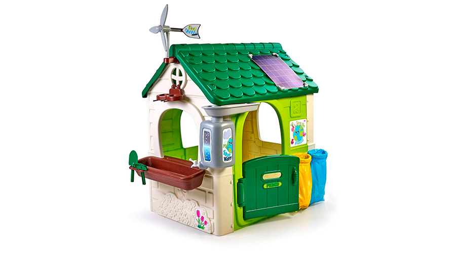 A casa de brincar Green House Feber está equipada com tudo o que os mais novos precisam para darem os primeiros passos no mundo da sustentabilidade. Há dois caixotes para reciclagem, ferramentas de jardinagem para criar pequenos jardins, e um sistema inteligente de reutilização da água da chuva. Vem ainda com uma mini ventoinha eólica e um painel solar de brincar. O brinquedo perfeito para as crianças se divertirem, aprenderem e cuidarem do planeta!