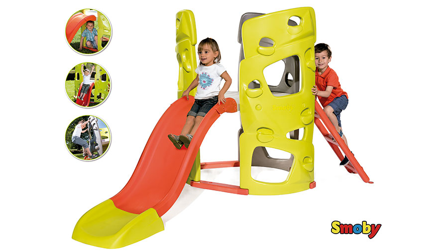 Esta torre multiatividades da Smoby vem equipada com duas áreas para manter os pequenos entretidos durante horas a fio: três paredes de escalada emocionantes e um escorrega de 1,5 metros para fazer subir a adrenalina. Suporta um peso máximo de 100 kg, para que as crianças possam brincar à vontade sem preocupações. E as cores do brinquedo vão permanecer vibrantes e intactas durante muito tempo, graças ao tratamento especial anti UV de todas as peças.