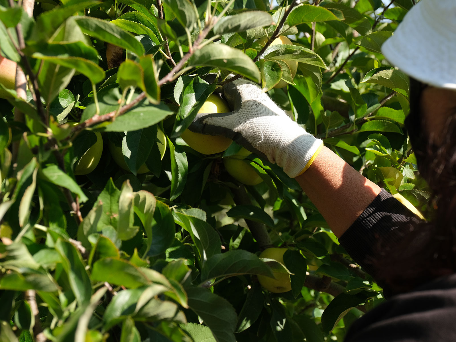A maior parte da colheita ainda é feita manualmente, com um cesto específico para preservar as maçãs e sem danificar a sua introdução no circuito de comercialização.