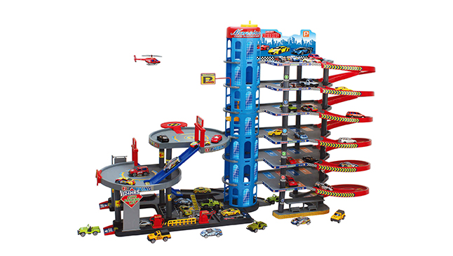 - Mega Garagem Zoko Speed Wheels: uma garagem gigante com 6 pisos, espaço para 10 veículos e até um heliporto no topo. As crianças podem fazer os carros subir e descer, abrir a cancela para sair e criar aventuras sem fim ao volante.