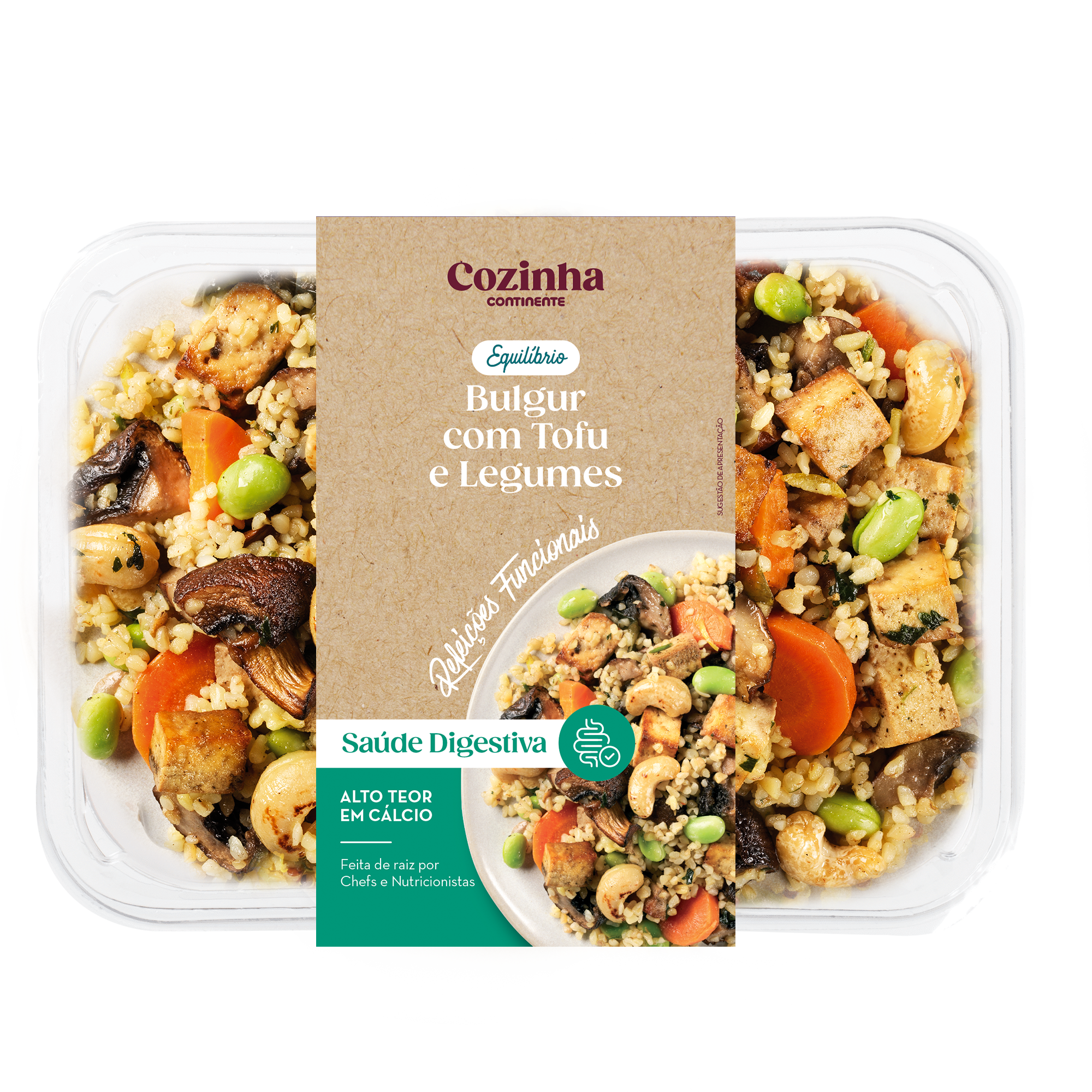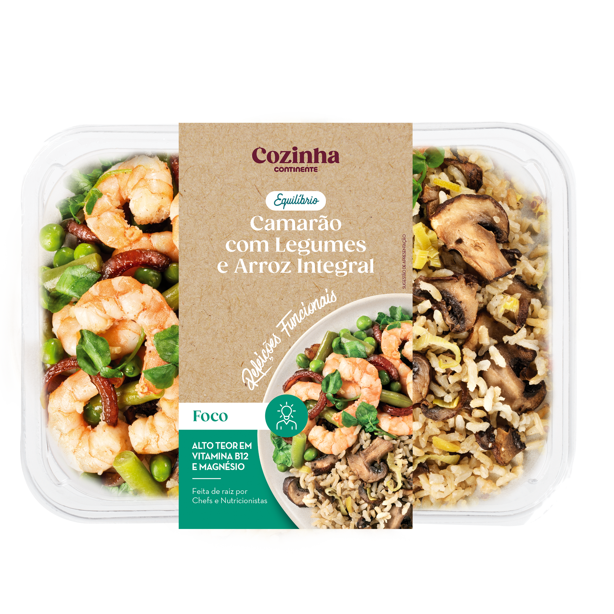 - Com proteínas, cereais integrais, fibra e hortícolas