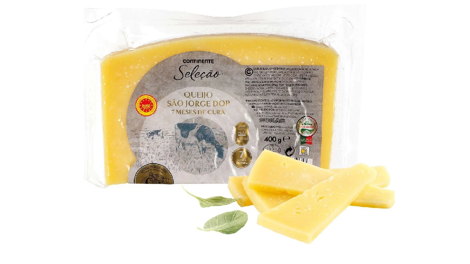 O São Jorge DOP Continente Seleção 7 meses de cura é um queijo com um sabor e aroma frutados e notas picantes. Harmoniza na perfeição com este pão de assinatura, de interior leve e côdea crocante, e um sabor caramelizado da massa mãe.