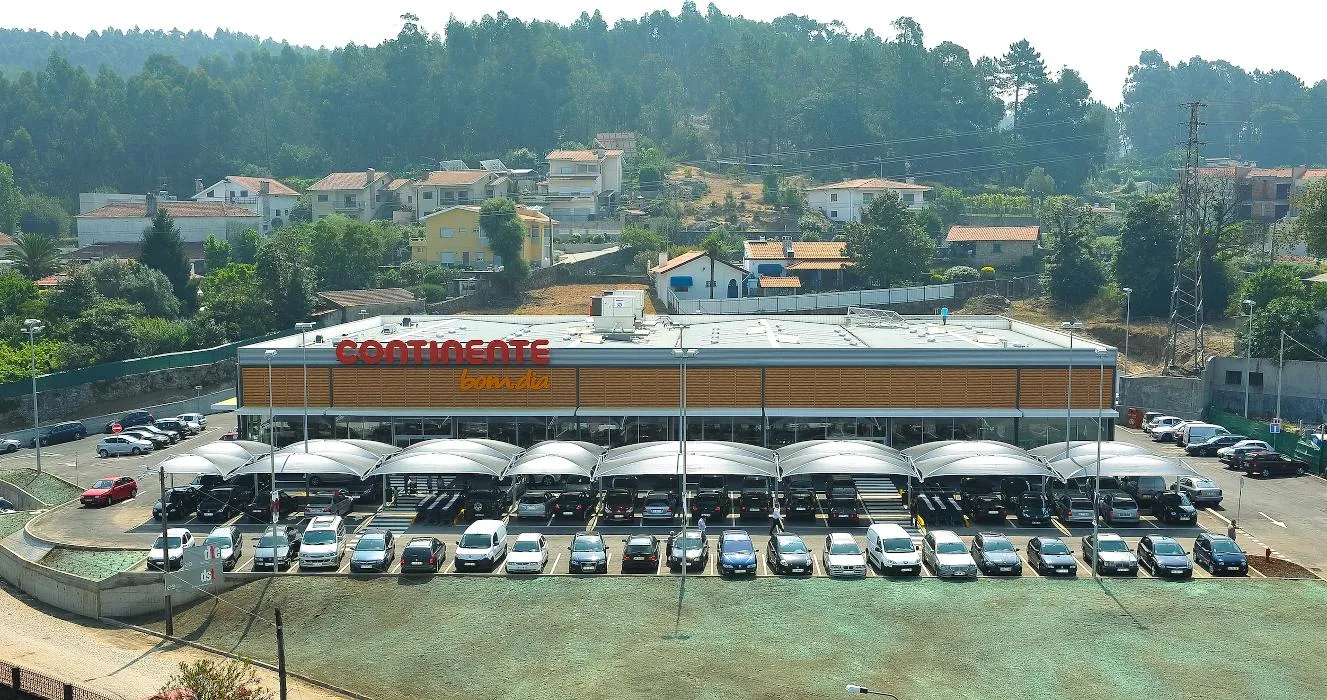 Esta loja Continente disponibiliza um parque de estacionamento a todos os seus clientes com lugares destinados a pessoas com mobilidade condicionada e lugares reservados para famílias.