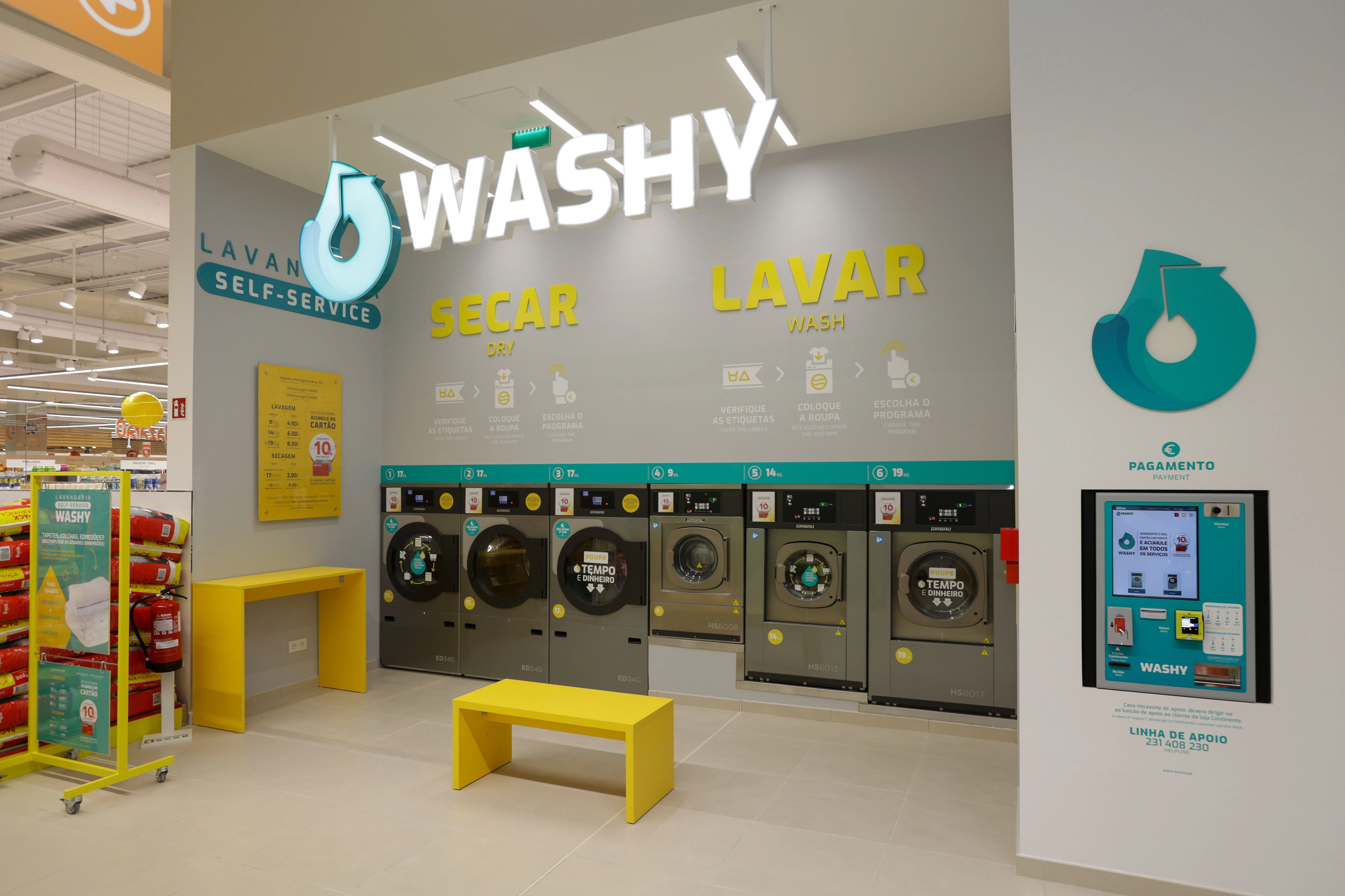 As lavandarias self-service do Continente, destacam-se pelo seu serviço de conveniência e pelos preços competitivos.