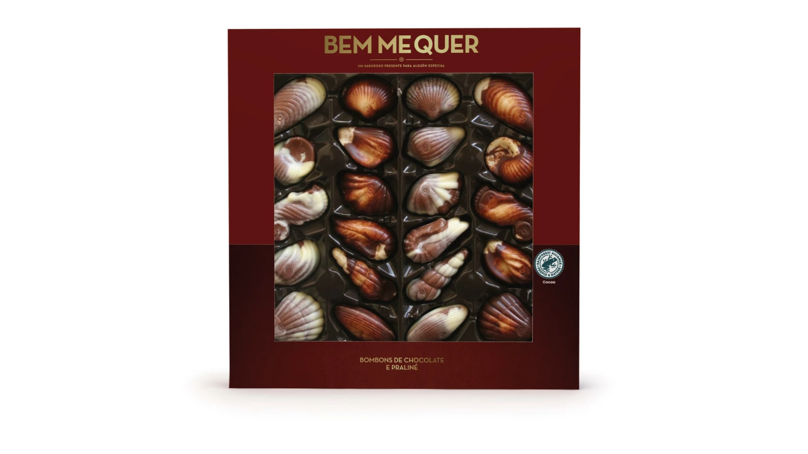 Estes chocolates e bombons Bem Me Quer, à venda em exclusivo no Continente, possuem certificação Rainforest Alliance – People & Nature. Este selo de sustentabilidade garante um fornecimento sustentável e de qualidade, assente nos pilares ambientais, sociais e económicos. Isto significa que o cacau utilizado respeita as normas e padrões de cultivo, proteção de florestas, comunidades locais e ambientais.