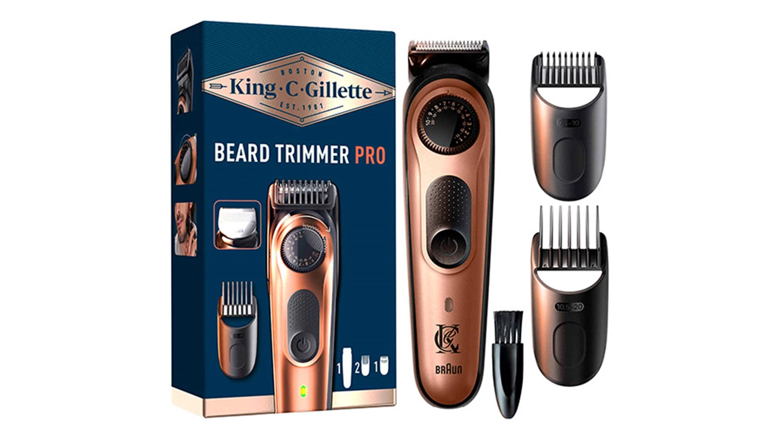 Com lâminas afiadas que duram anos e anos, a Beard Trimmer Pro Gillette King C permite aparar a barba durante 80 minutos com apenas uma carga. Pode ainda oferecer um gel esfoliante, um gel de limpeza facial ou um creme hidratante com vitamina E e extrato de alga roxa.