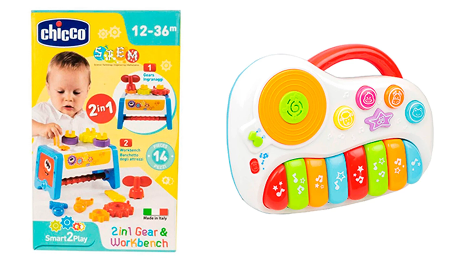 - O Meu 1º Teclado - Happy Bear: este teclado colorido permite explorar sons e melodias, com teclas musicais e botões de animais que estimulam as capacidades visuais e auditivas.