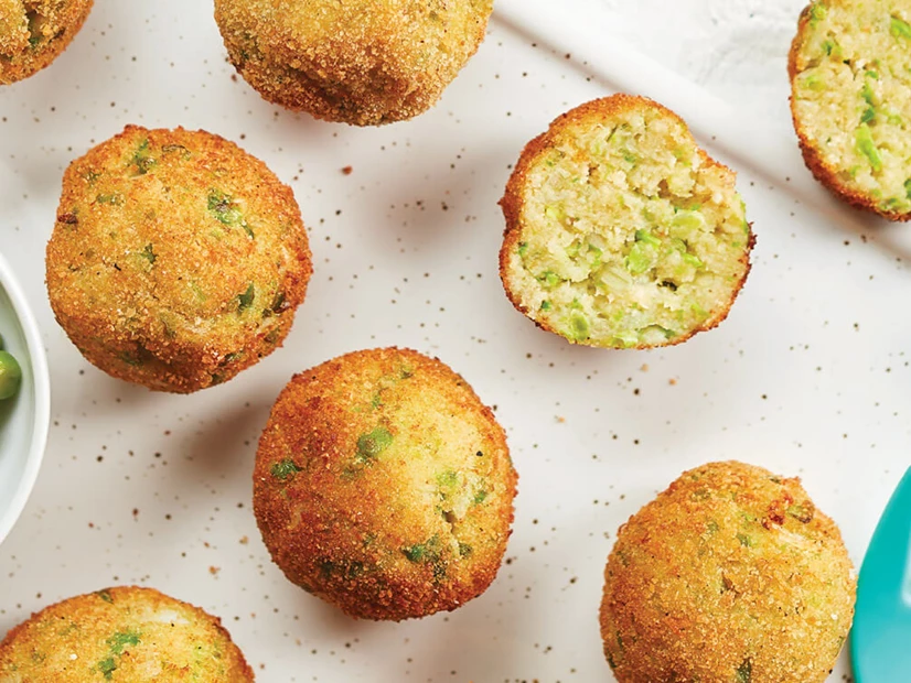 Faz bolinhas com as mãos com este preparado e passa-as por um pouco mais de pão ralado.