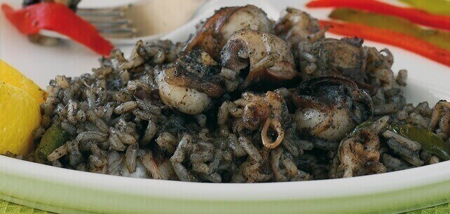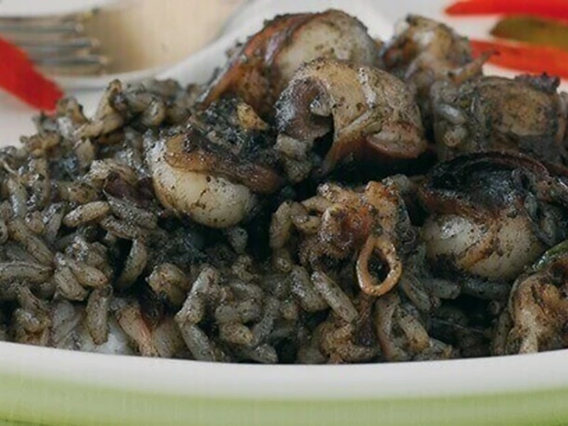 Junte o arroz ao refogado, mexendo bem para integrar todos os ingredientes. Regue com água até cobrir o preparado e, logo que levantar fervura, leve ao forno pré-aquecido a 240 graus durante 17 minutos.