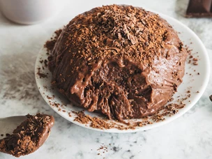 Para a cobertura, funda o chocolate branco com cerca as natas frescas e verta por cima do bolo.
