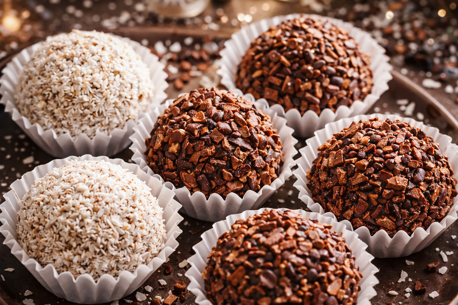 Antes de formar os brigadeiros unte bem as suas mãos com manteiga para não colar. Forme as bolinhas e passe os brigadeiros pelos seus topping favoritos.