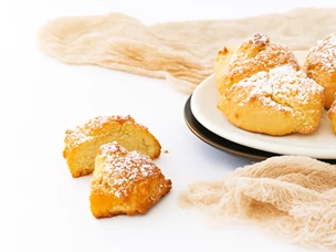 Para preparar os brioches com pepitas de chocolate, comece por dissolver o fermento no leite morno e reserve.