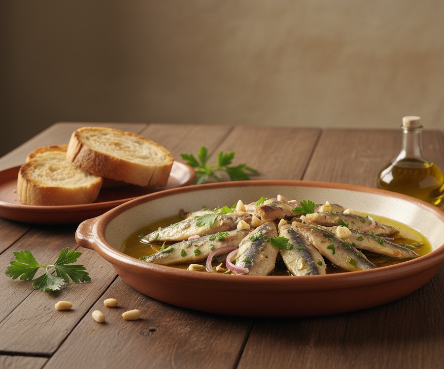 Num tacho coloque as cebolas. Junte o tomate, o alho, os peixes, o louro e a salsa.