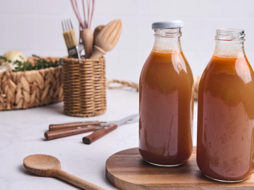 Triturar tudo com uma varinha mágica e coar. Quanto mais tempo cozinhar, mais sabor terá o caldo.