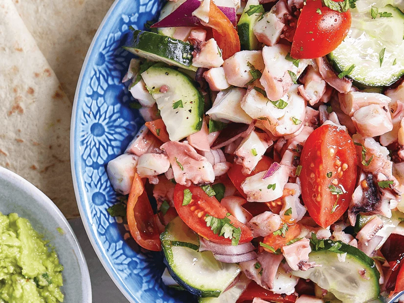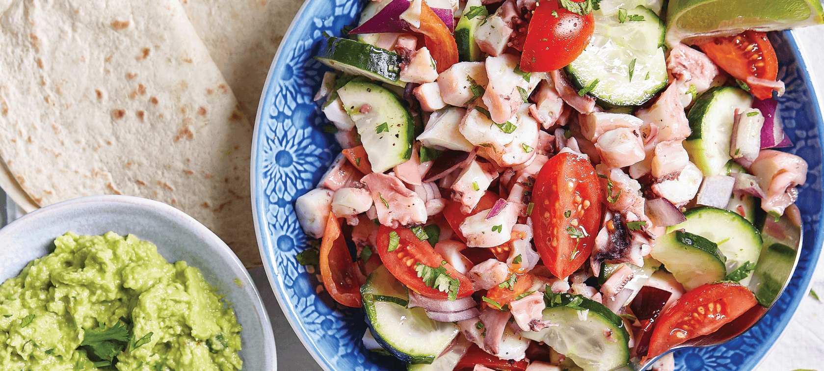 Sirva o ceviche com o abacate e tortilhas de trigo.