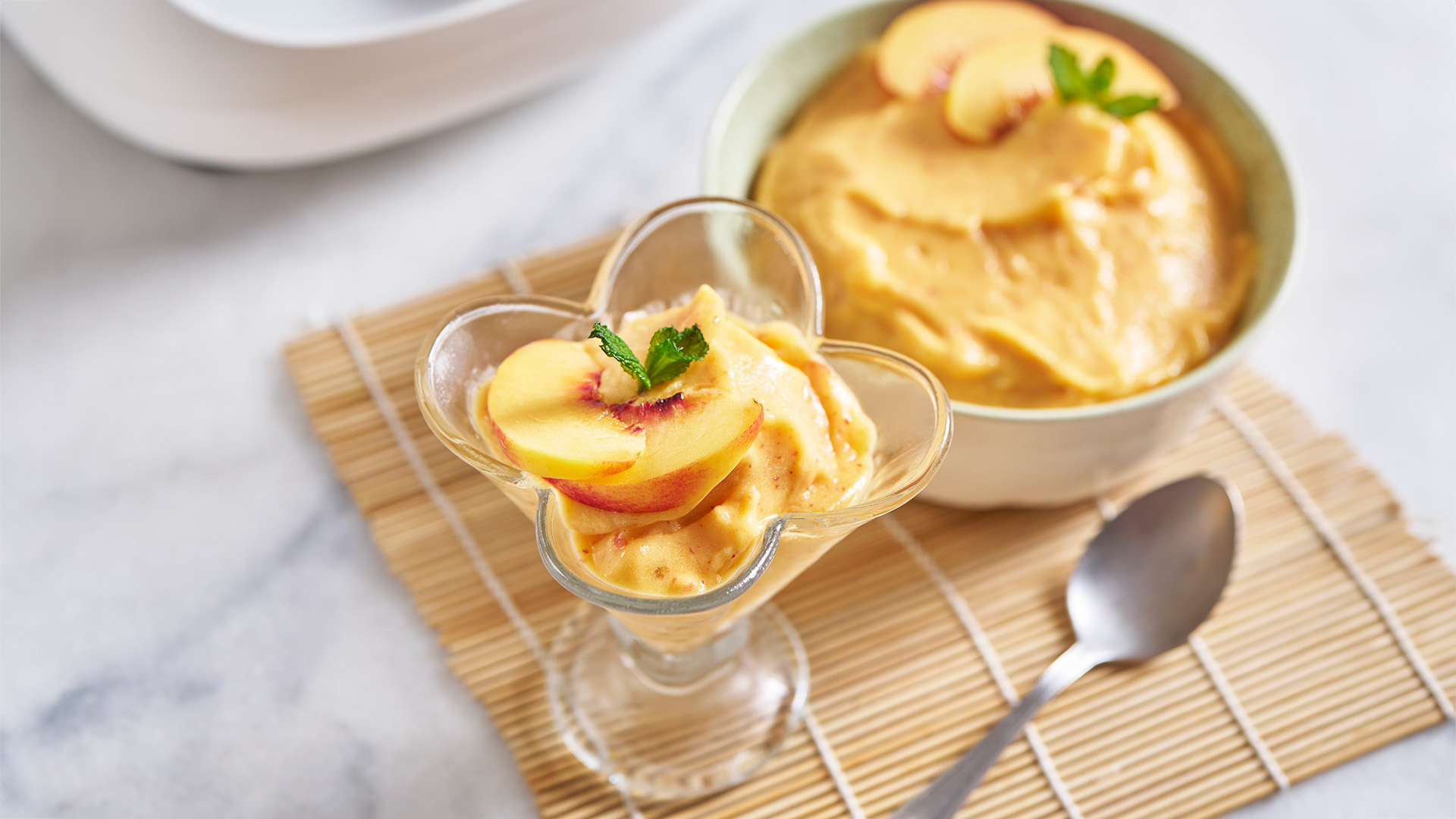 Coloque este preparado sobre a base de bolacha e leve ao frio de um dia para o outro. Quando estiver sólido, cubra com a compota e a hortelã.