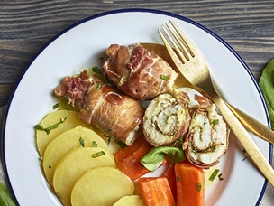 Sirva os filetes de dourada sobre o puré. Regue com o molho e guarneça com salsa picada.