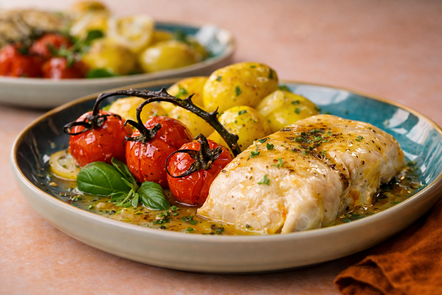Espalha metade do puré numa travessa, distribua por cima o salmão em posta escorrido e cobre com o restante puré.