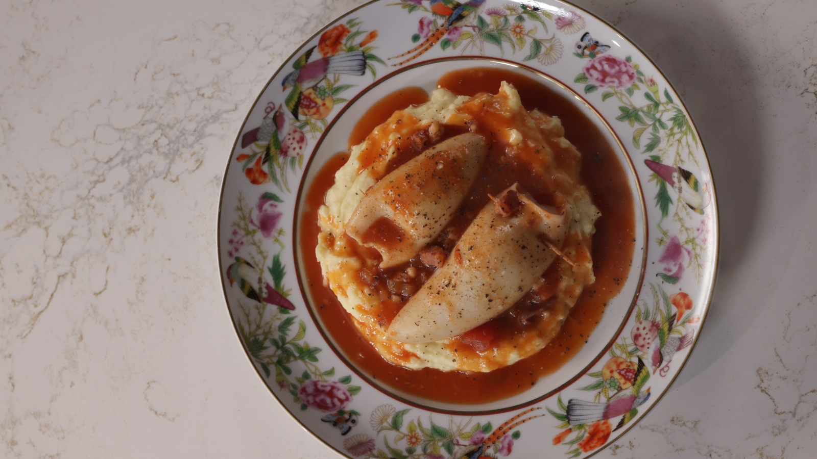 Sirva as espetadas de lulas e camarão regando com o molho de manteiga.
