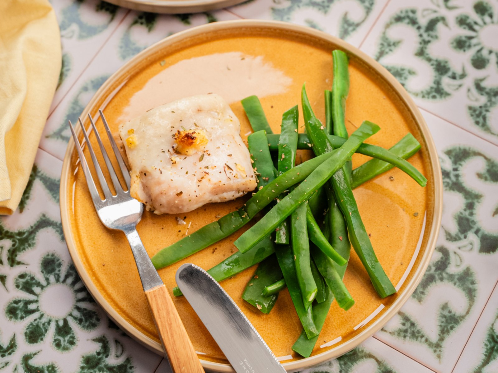 Sirva os filetes de pescada juntamente com o arroz de feijão finalizando com raspa de lima e 1 fio de azeite.