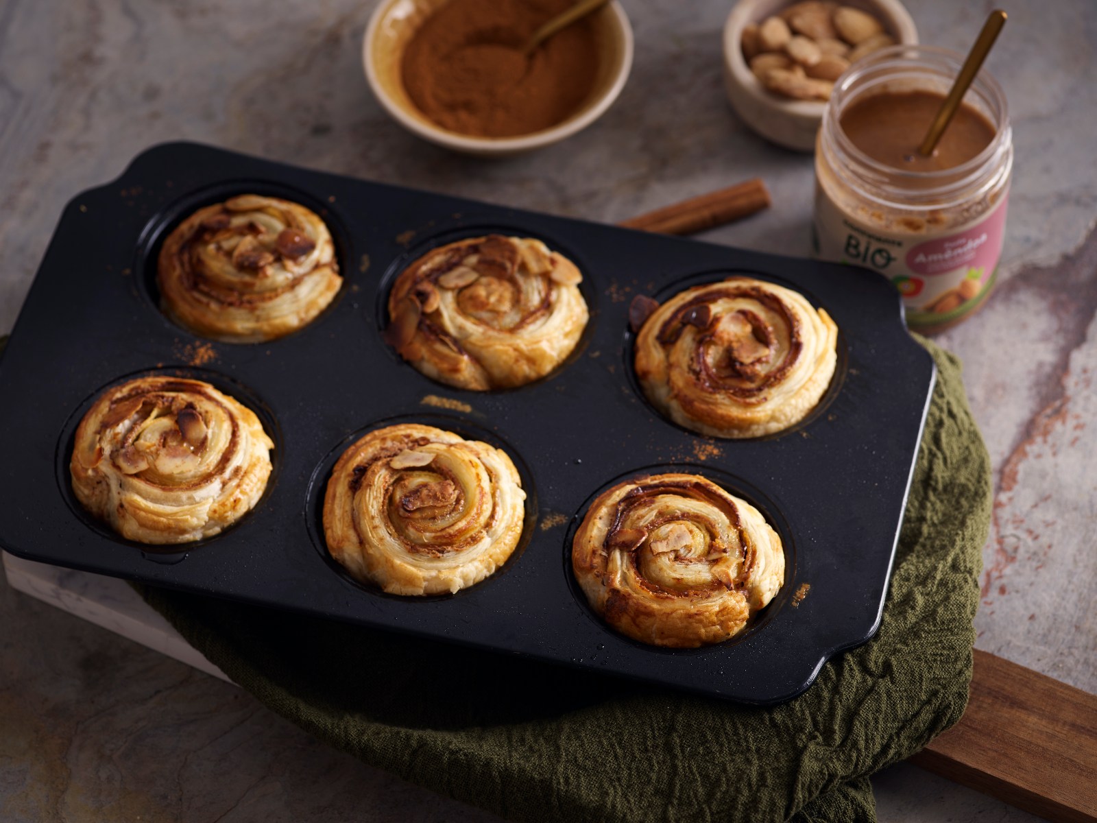 Estenda a massa folhada numa superfície lisa. Divida-a em três partes, sem fazer os golpes até ao fim. Recheie a parte do meio com o preparado de atum, disponha por cima o queijo mozarela cortado em fatias finas e polvilhe com manjericão.