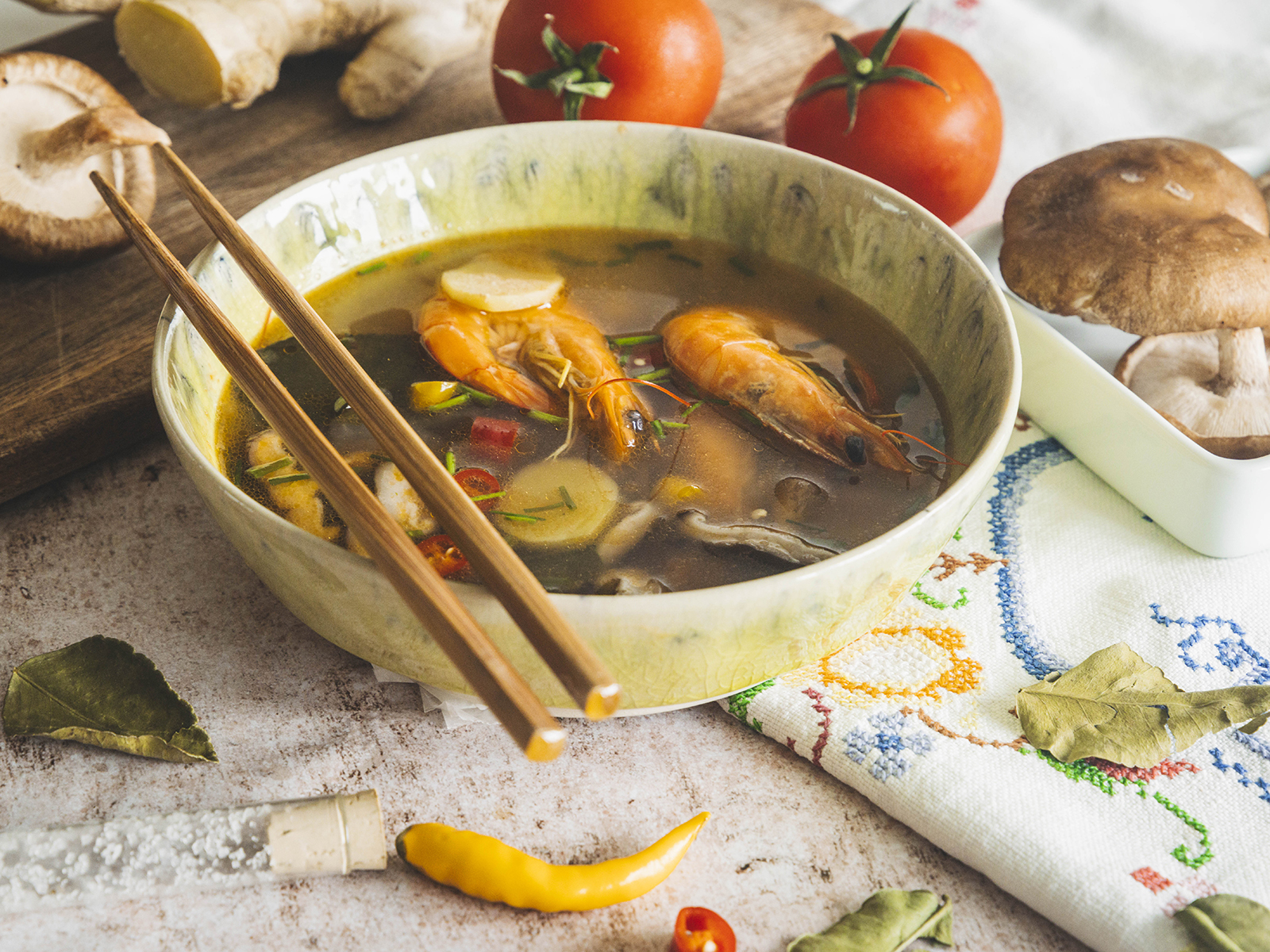 Para servir, corte o pedaço reservado de pepino e pimento vermelho em pequenos cubos e polvilhe sobre a sopa. Guarneça com folhas de manjericão e orégãos a gosto.