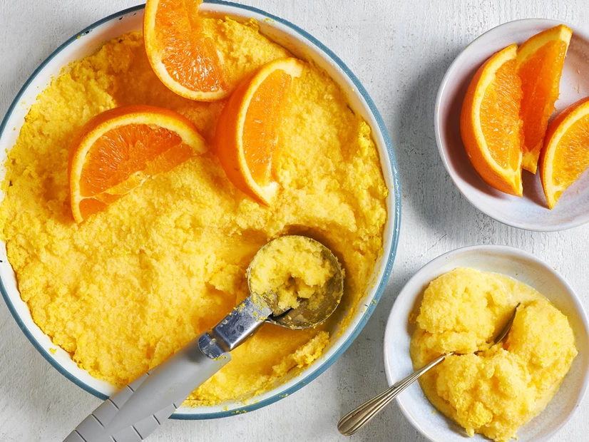• Triture o sorbet de novo no robô de cozinha e volte a colocá-lo no recipiente no congelador.