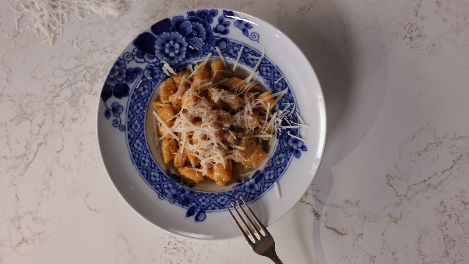Comece por preparar a massa das gyosas. Misture a farinha e a maisena numa taça. Junte a água e misture até conseguir formar uma bola densa.