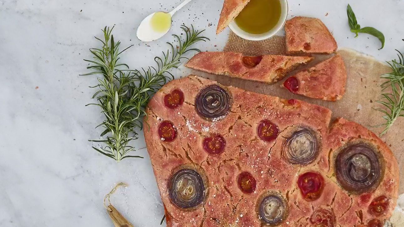 Sirva o húmus de beterraba em taças, alise a superfície e decore com um fio de azeite e sementes de sésamo.
