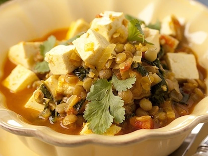 Retifique temperos, retire do lume e adicione o tofu. Envolva bem e decore com as folhas de coentros reservados.