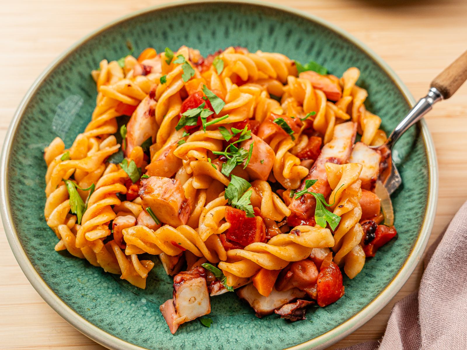 Deixar a massa cozer, mexendo de vez em quando. Servir e decorar com salsa.