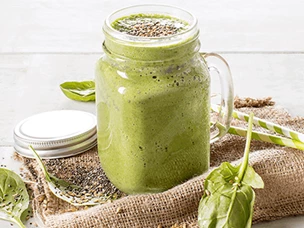 Num shaker, esmague a hortelã e o açúcar com a ajuda de um pilão.