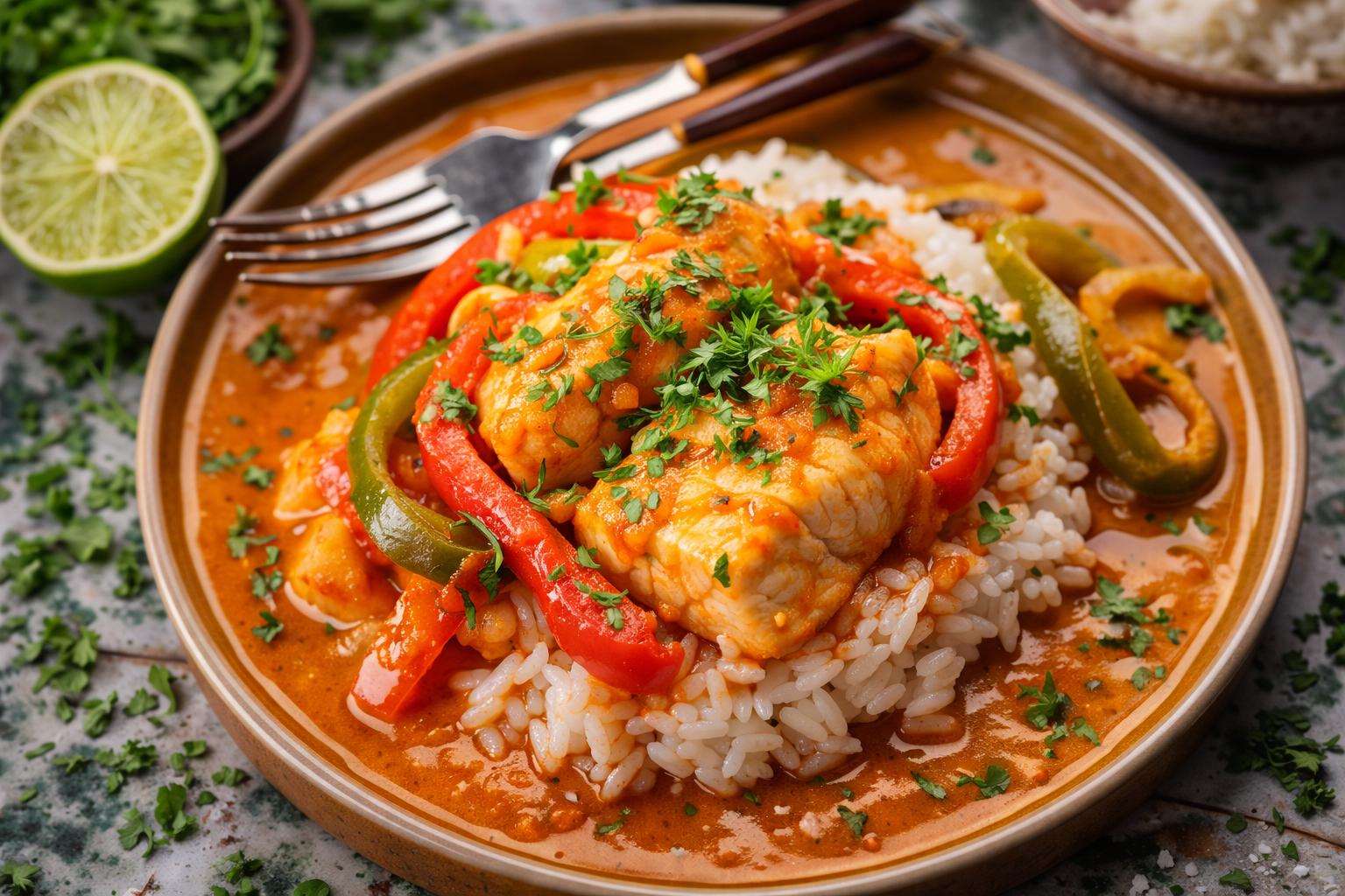 Adicionar o vinho branco, a polpa de tomate, um cubo de caldo de peixe e o leite de coco. Deixar apurar por 15 minutos. Se necessário juntar água.