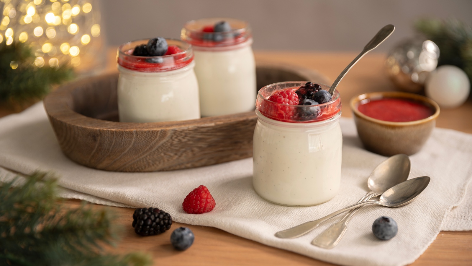 De seguida, metade da bebida vegetal de aveia. Bata suavemente por alguns segundos. Junte o resto dos ingredientes húmidos e o resto da bebida vegetal de aveia.