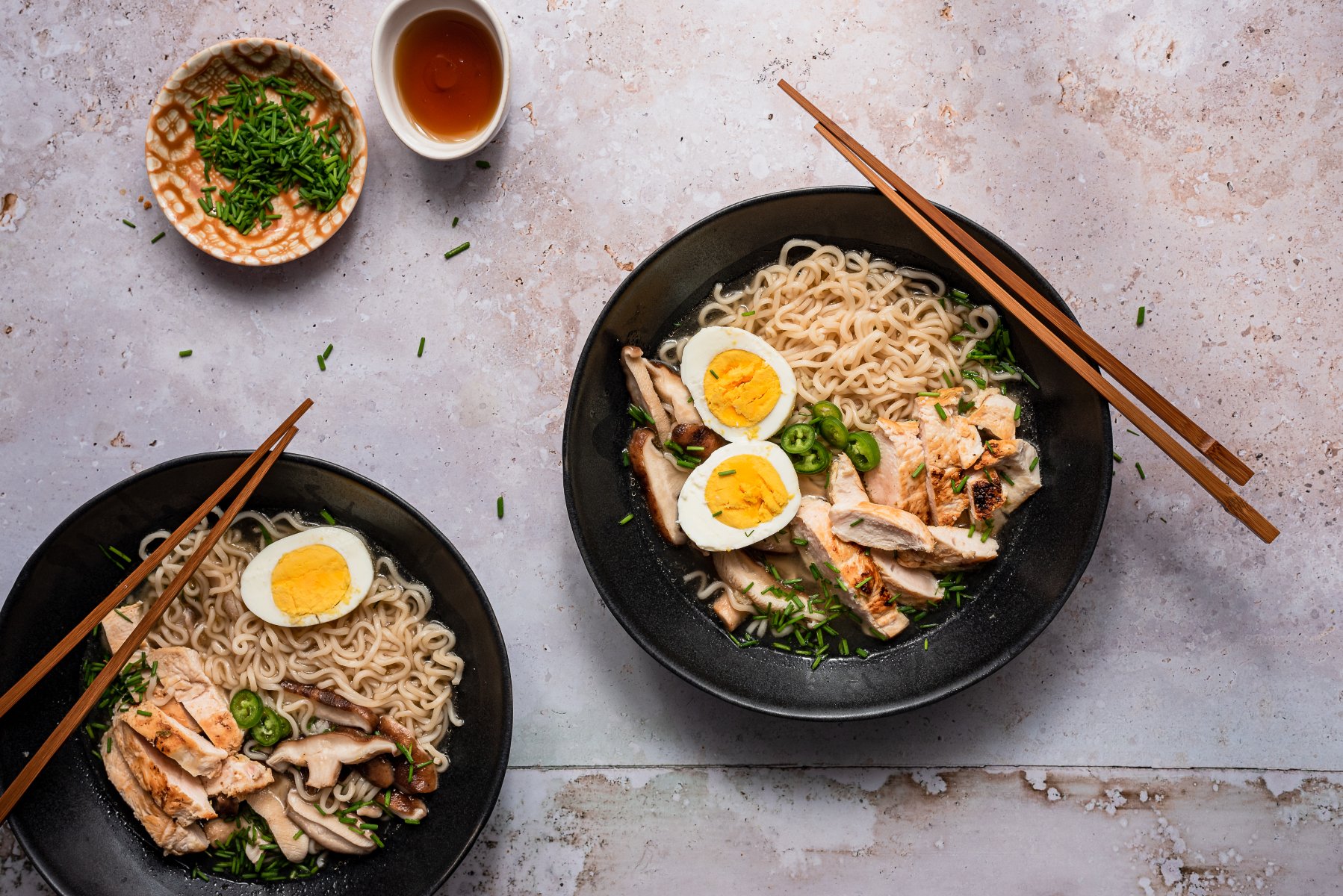 Coza os noodles em água a ferver com um pouco de sal, durante cerca de cinco minutos. Após os 5 minutos, retire do lume, escorra e reserve.