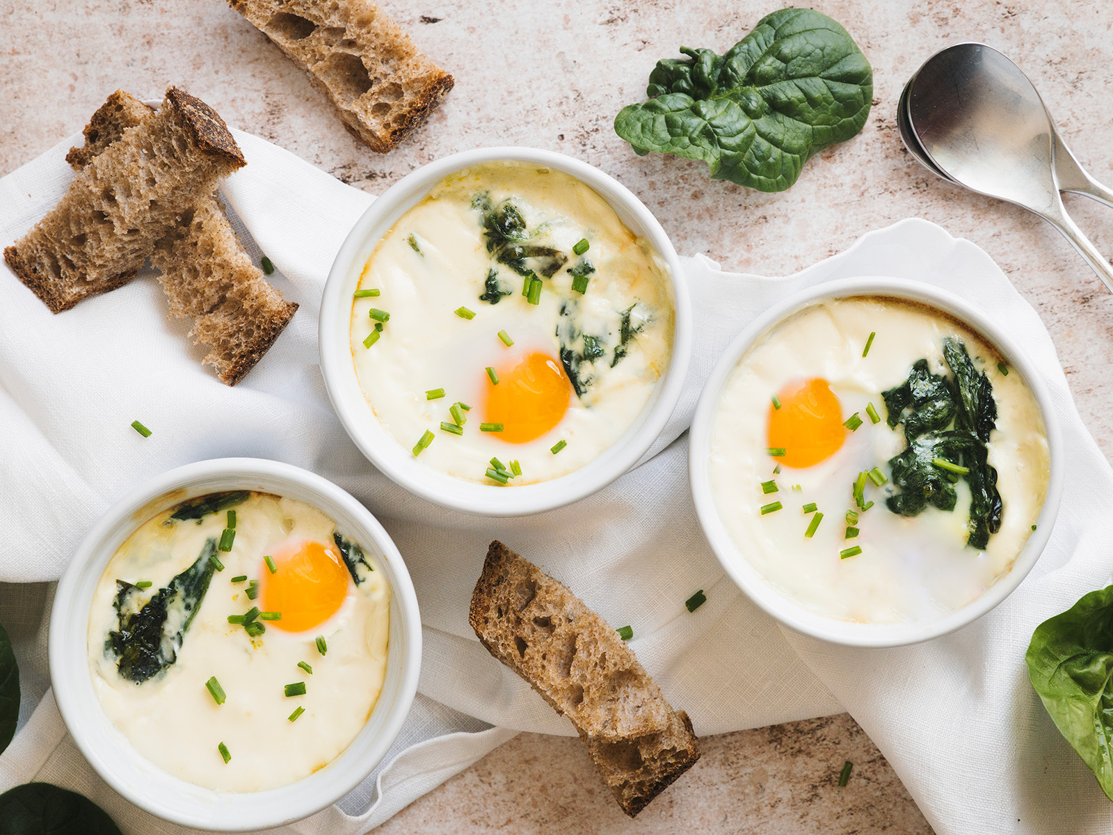 Numa tigela, bata bem os ovos com um garfo. Adicione o queijo ricotta, o azeite, sal e pimenta do reino e misture bem.