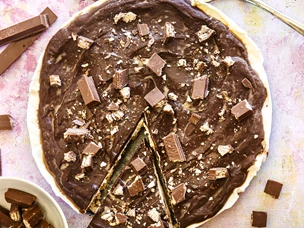 Coloque os biscoitos triplo de chocolate numa taça e esmigalhe com as mãos ou coloque dentro de um saco e esmague com a ajuda de um rolo de cozinha. Junte a manteiga derretida e envolva bem até que a mistura fique arenosa. Coloque nas metades do ovo de Páscoa e alise delicadamente com a ajuda de uma espátula. Reserve no frigorífico.