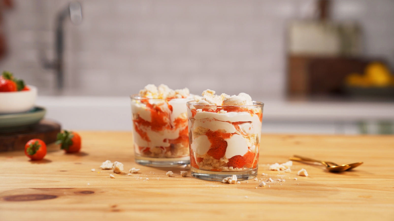Numa taça, bata as natas com o iogurte grego, o açúcar e a polpa de maracujá até obter uma mistura cremosa. Adicione a gelatina derretida e bata novamente para incorporar.