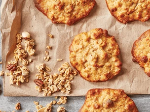 Passe as panquecas para um prato e faça uma torre de panquecas de aveia.