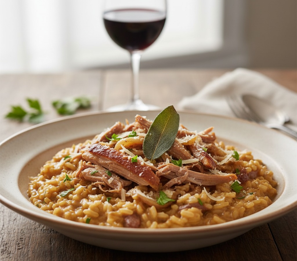 Por fim, é só preparar o prato. Disponha o puré de batata doce num prato, coloque a perna de pato por cima e junte compota de morango se desejar.