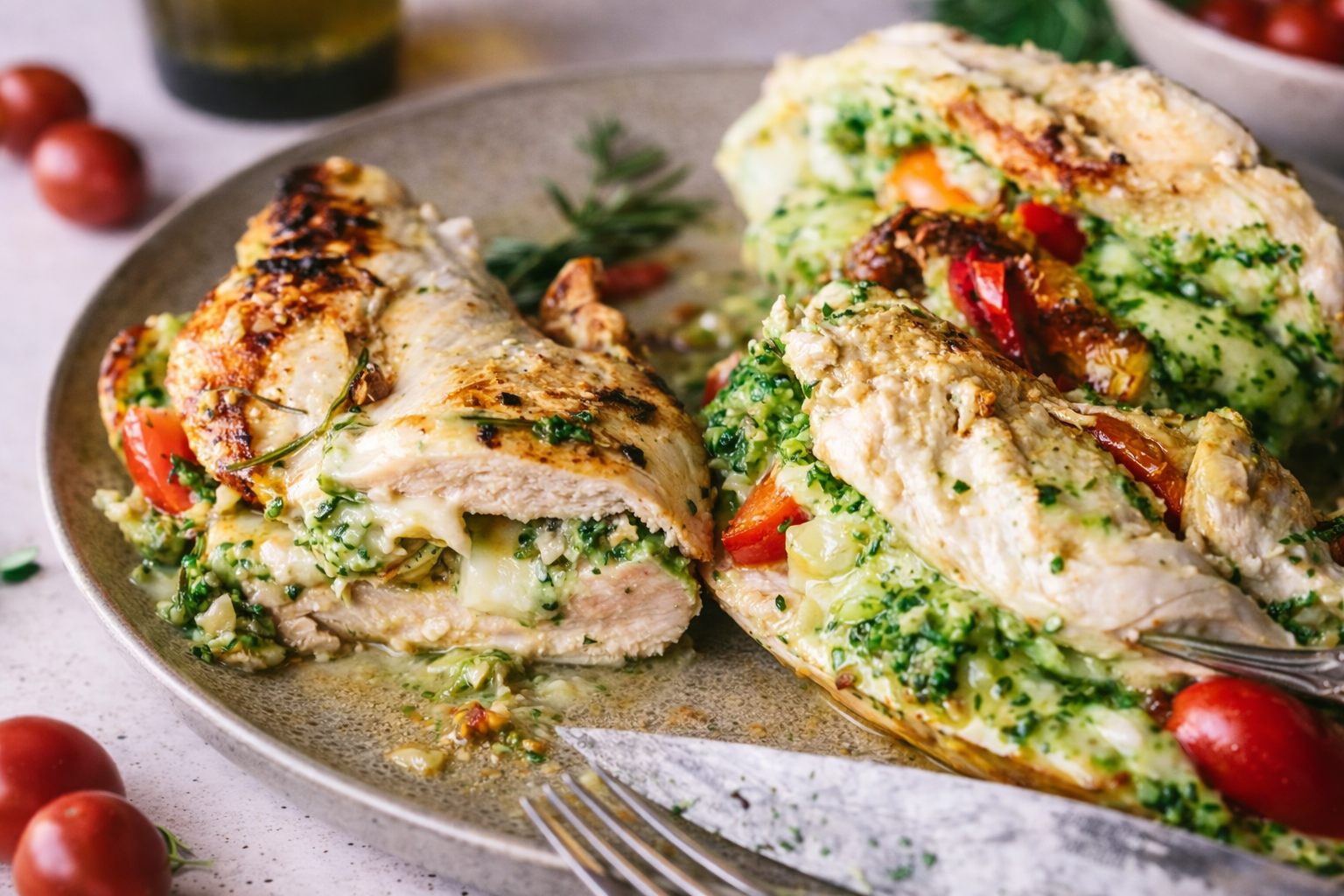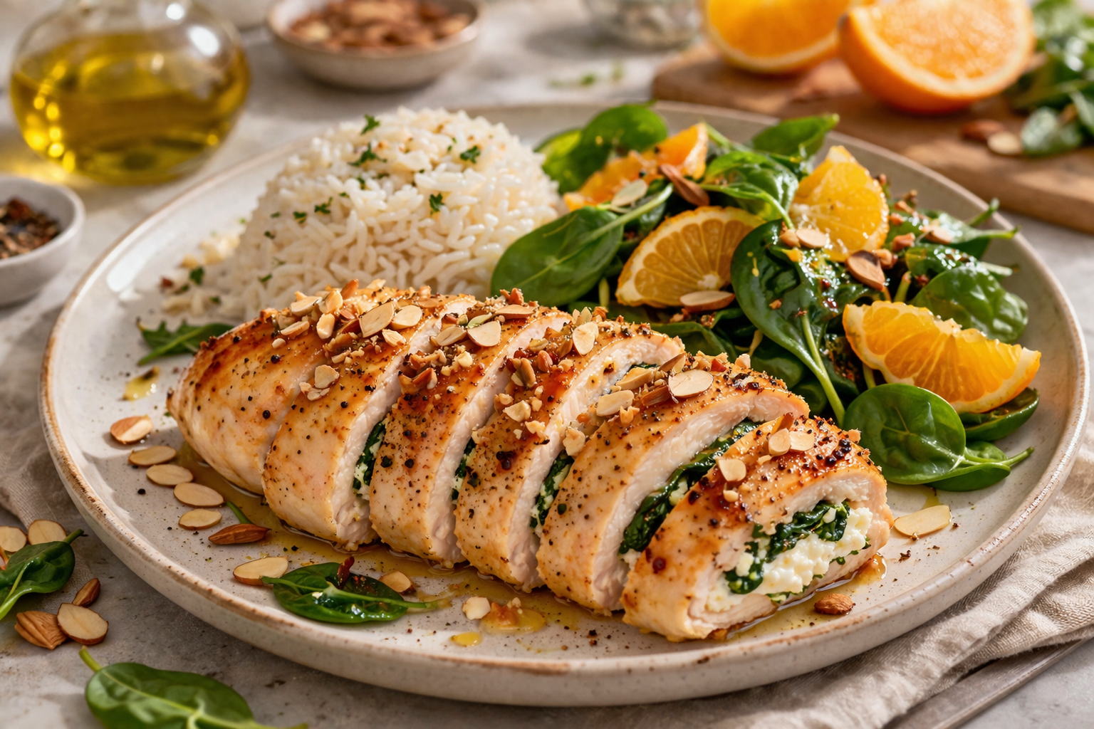 Comece por colocar os peitos de frango a marinar. Num tabuleiro coloque os peitos de frango e tempere com sal, pimenta, a raspa e o sumo do limão, a noz moscada, o pimentão doce, o alho em pó e um fio de azeite. Envolva bem os peitos de frango no molho para que fique espalhado de forma homogénea. Deixe marinar durante cerca de 30 minutos.